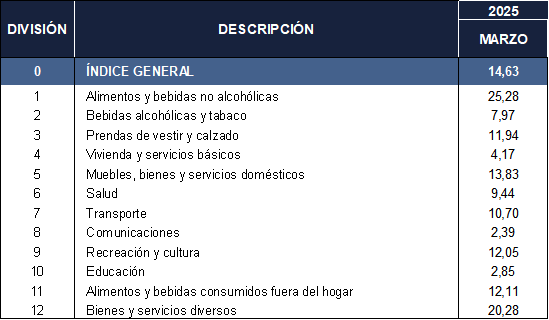 Cuadro N°1: Inflación acumulada a marzo, según División (en porcentaje)