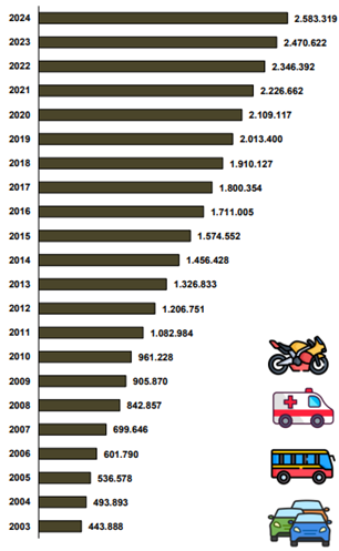 Figura N° 1: Evolución del Parque Automotor periodo 2003-2024 (en unidades de vehículos)