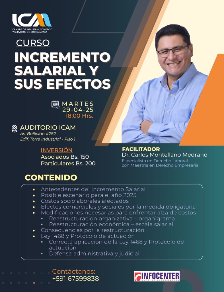 Inscripciones: https://icam.clicketplus.com/evento/incrementosalarialysusefectos