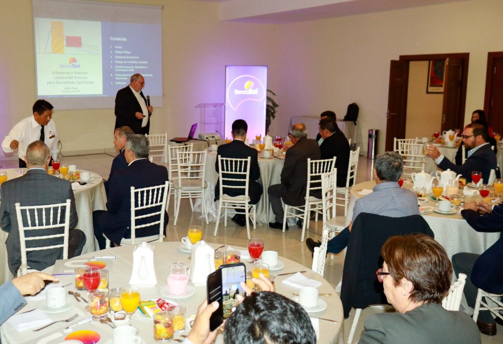 El evento contó con la destacada disertación de Martín Rapp, quien presentó un completo análisis del contexto económico, político y social del país, abordando los desafíos que enfrentará el futuro gobierno, así como las oportunidades y perspectivas para el sector empresarial. Este espacio de reflexión permitió compartir visiones sobre el panorama nacional y fortalecer el compromiso conjunto entre instituciones financieras y el sector productivo en favor del desarrollo económico del país.