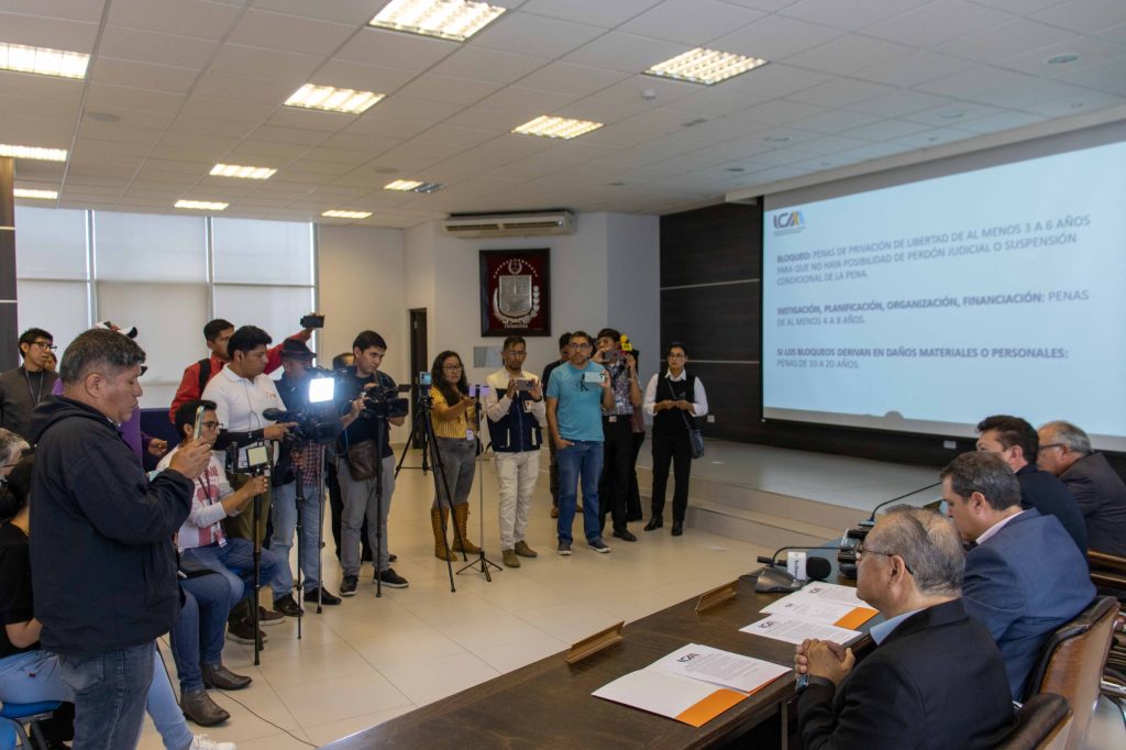 Asimismo, señaló que el derecho a la protesta no puede vulnerar derechos fundamentales como la vida, la salud, el trabajo, el libre tránsito o la propiedad privada. Por ello, instó a la Asamblea Legislativa Plurinacional a tratar con urgencia los proyectos de ley existentes para sancionar penalmente la ilícita actividad del bloqueo.