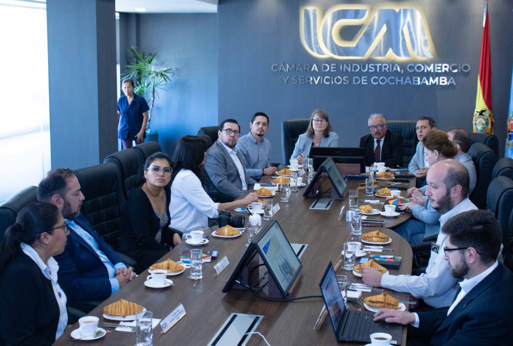 La Directiva de la Cámara de Industria, Comercio y Servicios de Cochabamba recibió la vista de la Coordinadora Residente del Sistema de las Naciones Unidas en Bolivia, Anna Pont, junto a su equipo técnico.