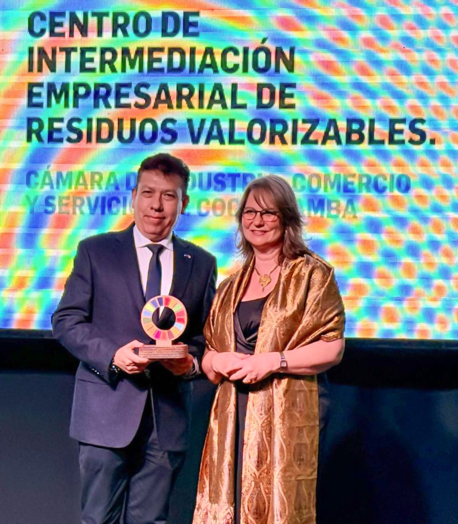 En esta edición, el Programa CIERVA (Centro de Intermediación Empresarial de Residuos Valorizables) de la ICAM fue reconocido de acuerdo al ODS 12 Producción y Consumo Responsable, como una de las mejores prácticas del país en economía circular. Con una trayectoria de 11 años, CIERVA se ha consolidado como una plataforma colaborativa multisectorial que articula a emprendedores, industrias, investigadores, organizaciones sociales y autoridades locales para mejorar la gestión de residuos en Cochabamba. Su modelo promueve el intercambio responsable de residuos valorizables y la transformación de desechos en materia prima útil para nuevos procesos productivos, fortaleciendo así los negocios verdes en la región.