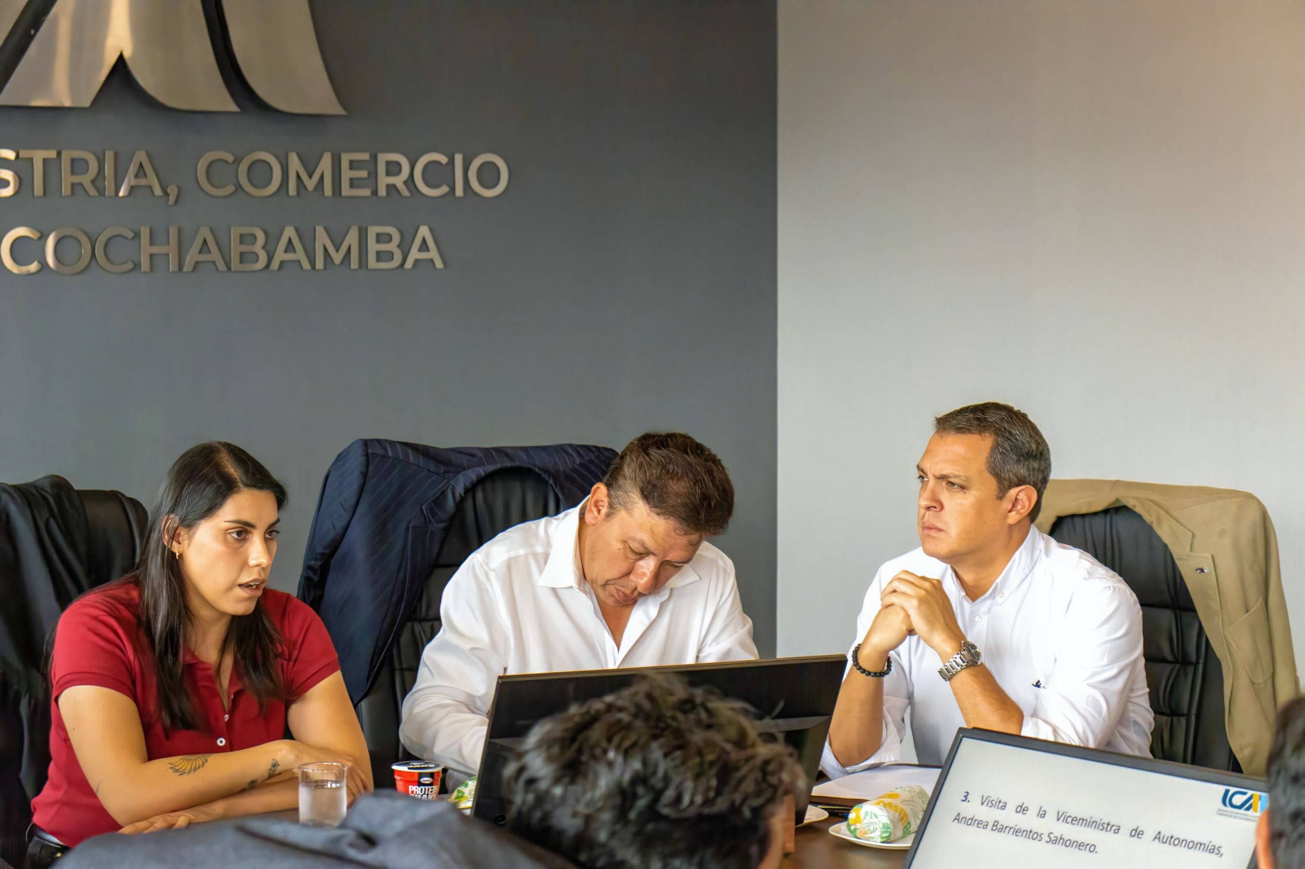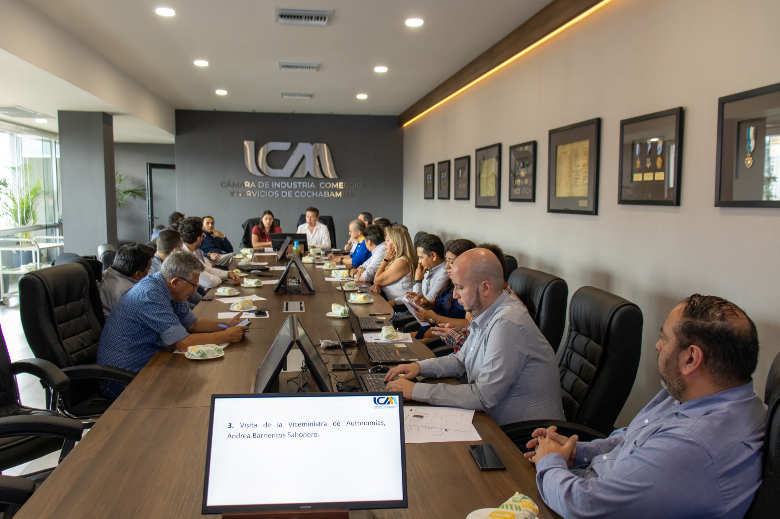 Hoy, el Directorio de la Cámara de Industria, Comercio y Servicios de Cochabamba (ICAM) recibió la visita de la Viceministra de Autonomías, Andrea Barrientos Sahonero, con quien se intercambiaron criterios sobre el fortalecimiento de la gestión autonómica y su relación con el desarrollo productivo regional.