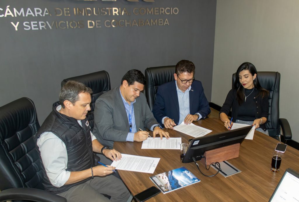 La Cámara de Industria, Comercio y Servicios de Cochabamba (ICAM), representada por el Presidente, Wildo Dolz; el Tesorero, Ramiro Valencia; el Gerente General, Alberto Arze, y la planta ejecutiva; recibió la visita del Gerente General de Boliviana de Aviación (BoA), Juan José Galvarro Requena, oportunidad en la cual, ambas instituciones, suscribieron un Convenio de Alianza para promover la LIII Asamblea General de la Asociación Iberoamericana de Cámaras de Comercio, Industria y Servcicios (AICO) que se desarrollará en Cochabamba del 11 al 14 de abril, evento organizado por la ICAM que concentrará a las instituciones de representación empresarial más importantes de Iberoamérica y contará con la participación de autoridades nacionales, departamentales y municipales, constituyéndose nuevamente nuestro Departamento en la sede de eventos que construyen oportunidades de inversión, innovación e integración sostenibles en nuestro país.