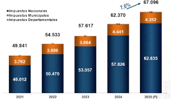 Figura Nº 2: Recaudación Tributaria 2021 – 2025, en millones de bolivianos y porcentaje